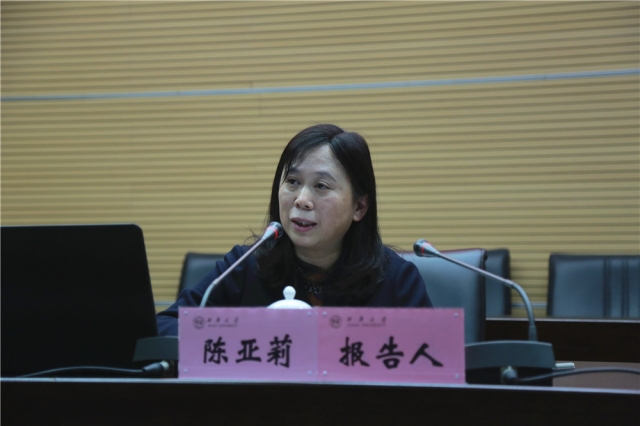 陈亚莉处长结合实际案例,从推进行政事业单位内部控制建设的背景及意义、概念及特点、目标和原则、单位层面内部控制建设要点、经济活动主要业务控制要点、评价与监督等6个方面就交通厅在内部控制方面的经验做法作了介绍。她着重分析了行政事业单位内部控制具有制衡性、流程化、风险导向等三个特点。她强调了实施内部控制规范要坚持四个基本原则,注重系统性,坚持全面推进;注重有效性,坚持问题导向;加强协同性,坚持共同治理;坚持“以评促建”,统筹推进。陈亚莉处长还就单位层面内部控制要点与经济活动主要业务控制要点作了指导,并就学校做好内部控制建设提出了建议,要通过“以评促建”的方式,全面推进学校内部控制建设,要不断加强学校内部控制体系和机制建设,进一步防范风险,化解风险。